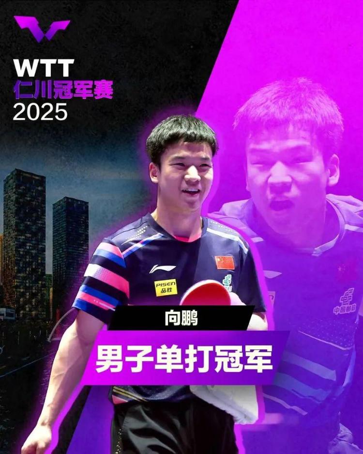 在最后进行的男单决赛中,中国新秀向鹏仅耗时25分钟,便直落四局完胜东道主老将李尚洙,职业生涯首次在WTT冠军赛级别赛事中登顶。