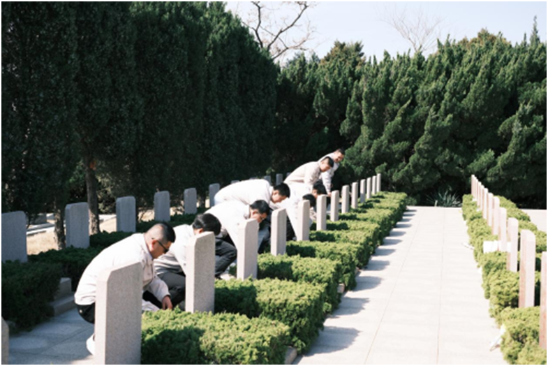 在烈士墓区,项目党员同志手持毛巾,轻蹲在墓前,逐一擦拭烈士墓碑。在崂山革命烈士纪念馆,认真聆听革命先烈的英雄事迹,观看珍贵的历史图片和文物资料,深入了解青岛地区革命斗争的光辉历程,让在场的每位同志都深受教育和触动。
