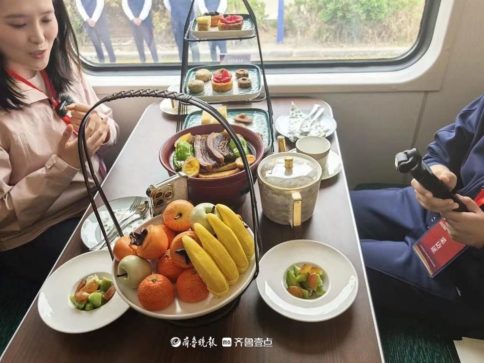 此外,在列车的运行过程中,节假日和周末还将安排非遗展示和文艺演出等活动进车厢,为游客带来丰富的旅途体验。列车上还设有 2 节休闲娱乐车厢和 2 节美食餐车,游客可以尽情休闲娱乐,品尝山东特色美食,购买特色文创产品。