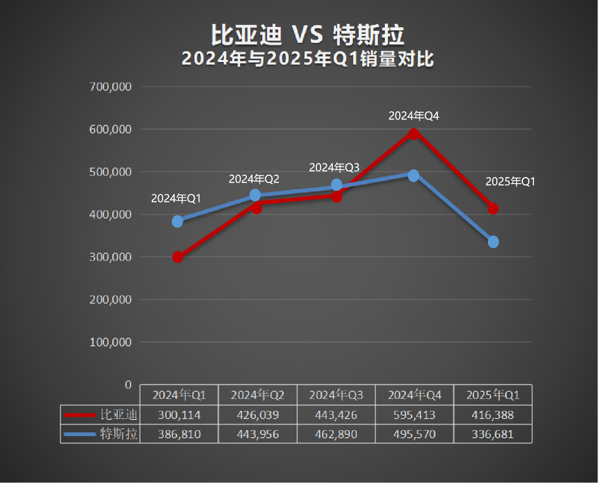 再超特斯拉,比亚迪成为2025年一季度纯电车型全球销冠