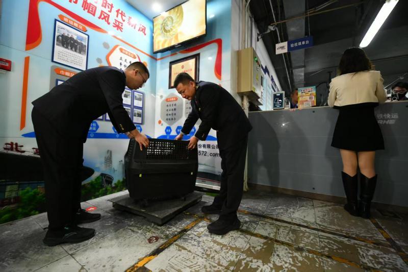 当天一早,准备托运两狗一猫的崔女士来中铁快运北京南站营业部办理托运服务。