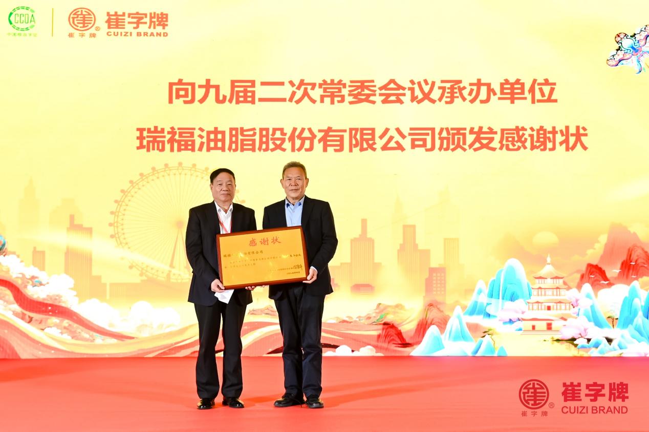 在压轴环节中,中国粮油学会向瑞福油脂股份有限公司颁发感谢状,表彰其多年来在行业标准制定、工艺技术传承、产业定向扶贫等方面的突出贡献。
