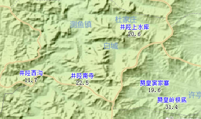 4月11日白天到夜间,承德大部地区出现雷阵雨天气,220个雨量站记录降水。市区累计降水量6.5毫米,23雨量站降雨量超10毫米。平泉市吕泉子村雨量最大,达23.3毫米;平泉小庙村、承德县岔沟分列第二、第三,分别为21.8毫米和18.5毫米。