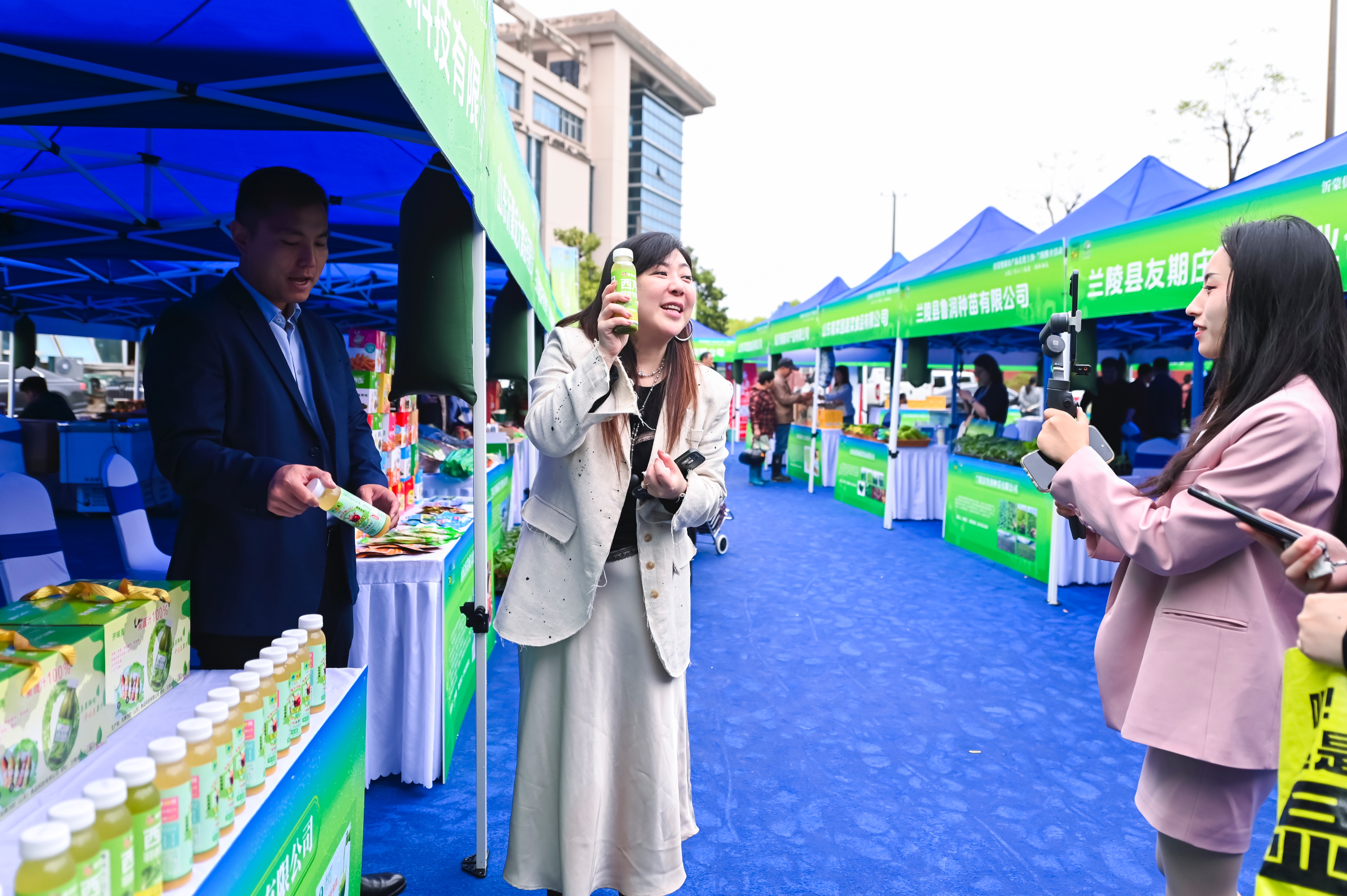 展销现场如火如荼,线上直播同样精彩纷呈。活动现场,知名主播"女神探vivi"通过直播平台向全国消费者推介沂蒙特色农产品。直播间里,产自兰陵的牛蒡茶、冻干水果、鲜榨果汁等产品一经上线便引发抢购热潮。"这款果汁是鲜果纯榨,配料表只有100%果汁,喝一口就能尝到新鲜的沂蒙味道,推荐大家购买!"主播的专业讲解吸引了近万网友在线观看,销量一再攀升。