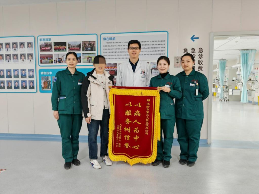 为了表达这份感激之情,季阿姨的家人精心制作了一面锦旗,并将其赠予急诊医学科。这面锦旗不仅代表了对医护团队精湛医术和高尚医德的肯定,更是一种鼓舞与激励。在急诊医学科这个看不见硝烟的战场上,医护人员凭借专业技能和无私爱心,为每位患者点燃了希望之光,用实际行动展现了医者仁心的崇高精神。锦旗背后的故事,也将继续鼓舞着更多医护人员,在守护生命的征途上,坚定不移地前行。
