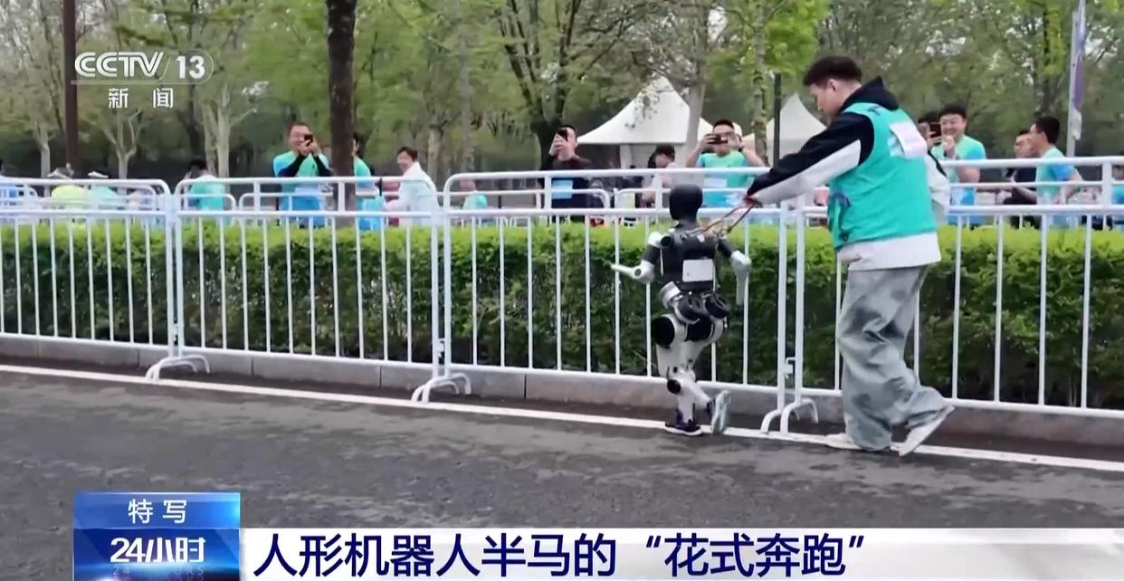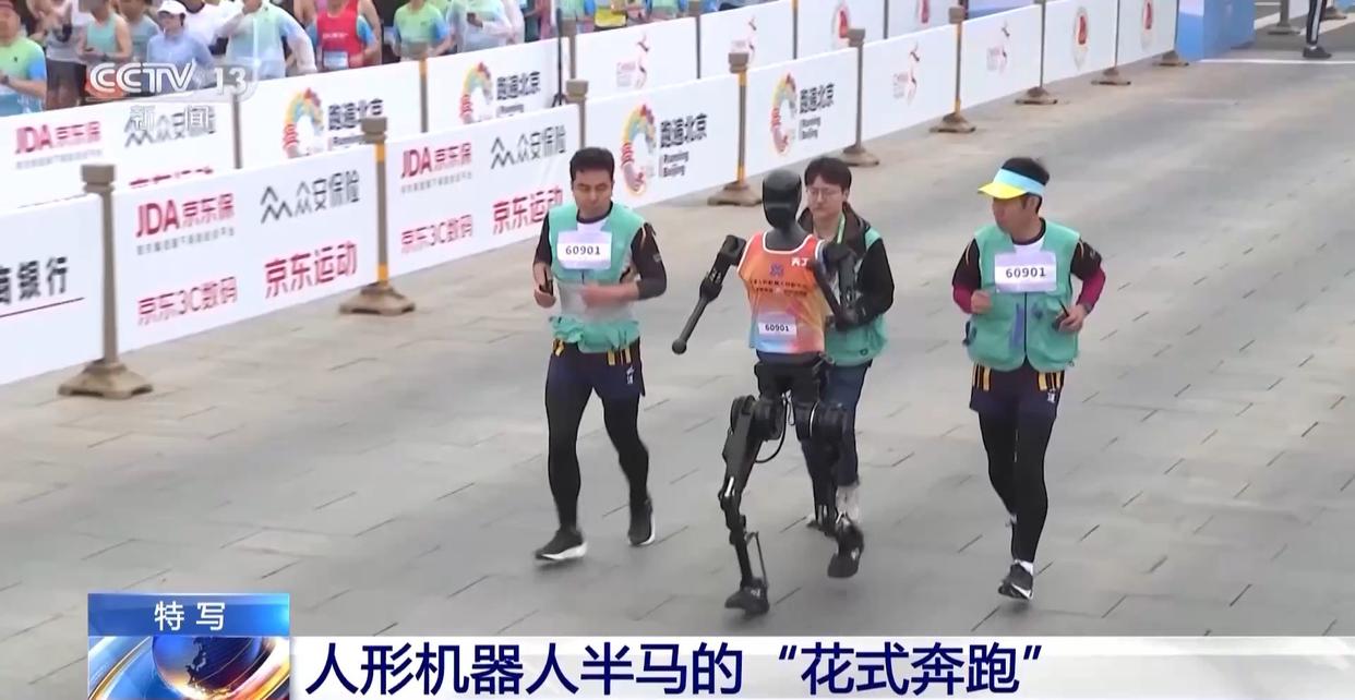 萌态百出 看人形机器人半马的“花式奔跑”