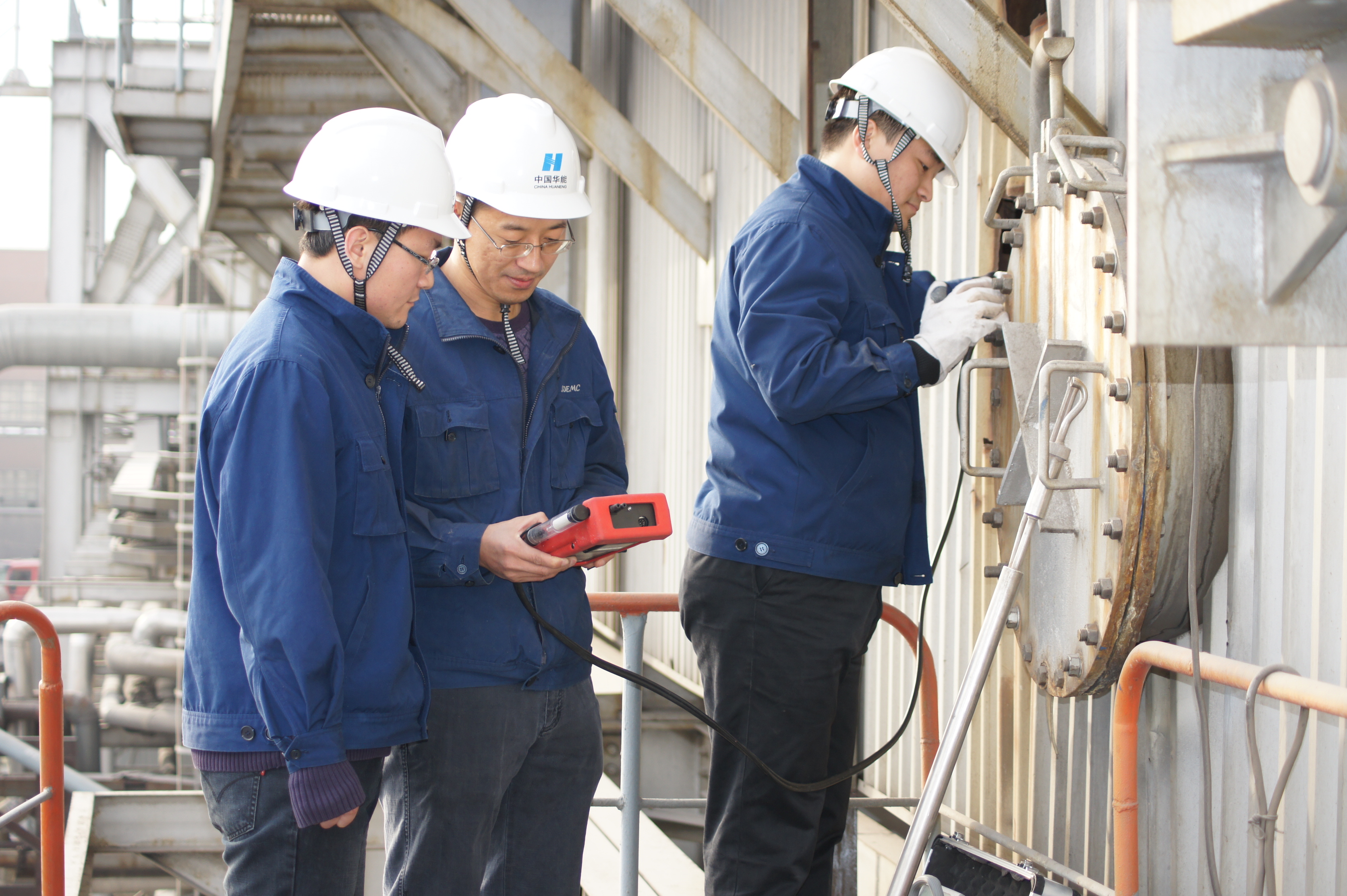 谷树茂说,污染源现场监测,经常需要背负十几斤重的设备,爬到几十米高的平台高空作业。有时候监测点周边设施的温度还挺高,甚至会达到一百多度。一不小心鞋子可能会被烫坏,皮肤也有可能被烫伤。有一次,谷树茂和同事在30米高的平台上监测,企业用于脱除污染物的液氨罐阀门突然泄漏,氨气顺着烟囱很快就到了他们身边,那种窒息的感觉,谷树茂至今还记得非常清楚。“当时,我们就抓起身边监测用的纱布,迅速捂住眼睛、鼻子和嘴巴。好在那天有风,而且这种氨气在高空扩散得比较快,最后我们安全顺利地撤离了现场。”