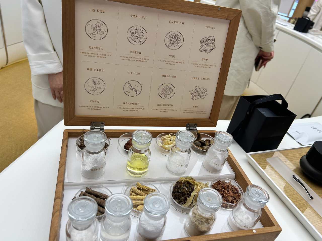 在“雨亭”店内,记者也看到了很多中国本土特色植物。据谷雨科学传播官刘冀湘介绍,公司以中国特色植萃中的明确活性成分为研发方向,通过高纯度提取与剂型应用技术,为产品植入更适合中国人肤质的“中国芯”。目前,谷雨的“中国芯”功效原料库包括极光甘草、稀有人参皂苷CK、紫檀芪、天山雪莲愈伤组织干细胞等多个成分。