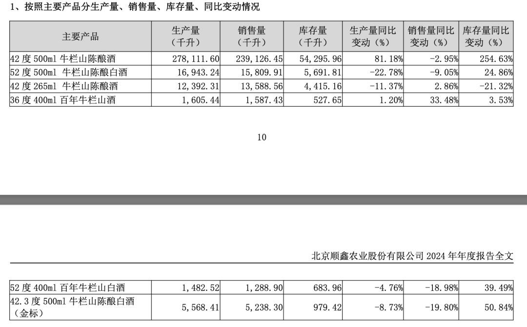 22日晚,顺鑫农业发布2024年报及2025年一季报,报告期内,公司白酒业务(牛栏山)实现营业收入70.41 亿元,同比去年增长 3.19%。在过去的2024年,牛二的销量仍有个位数下滑,寄予厚望的金标牛产量下滑8.73%,销量5238.3千升,同比下滑19.8%。
