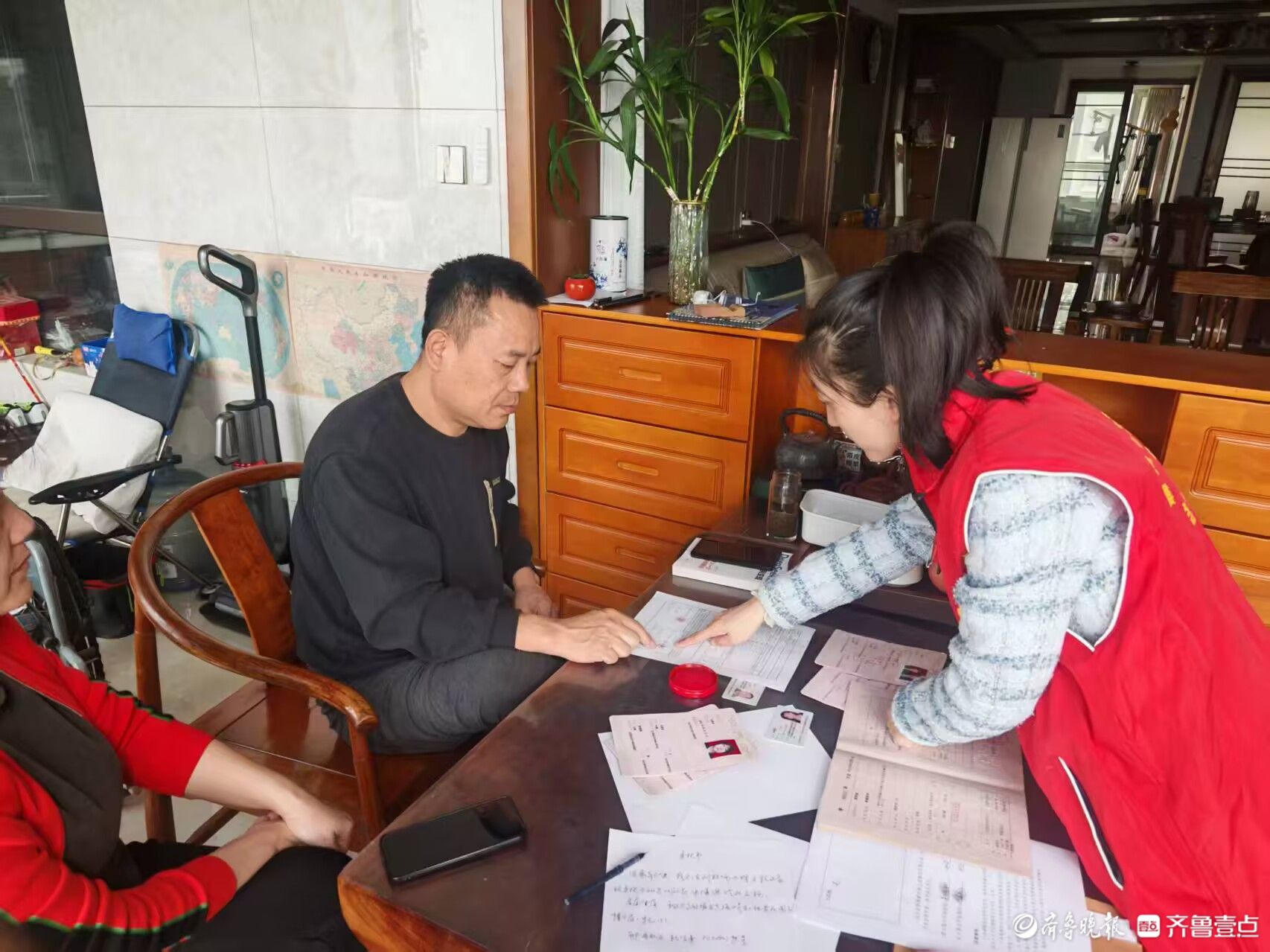 近日,市民马女士来到聊城市开发区市不动产登记分中心大厅,申请办理转移登记业务,但房屋原权利人郭先生行动不便,无法到现场办理。工作人员了解情况后,主动表示可提供上门服务。当日下午,工作人员便与马女士一起前往开发区东城街道华粹园小区郭先生家中。
