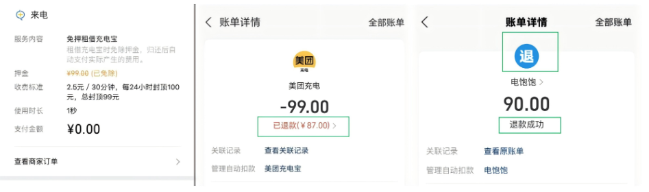 来电、美团、电饱饱退费情况。江苏省消保委供图