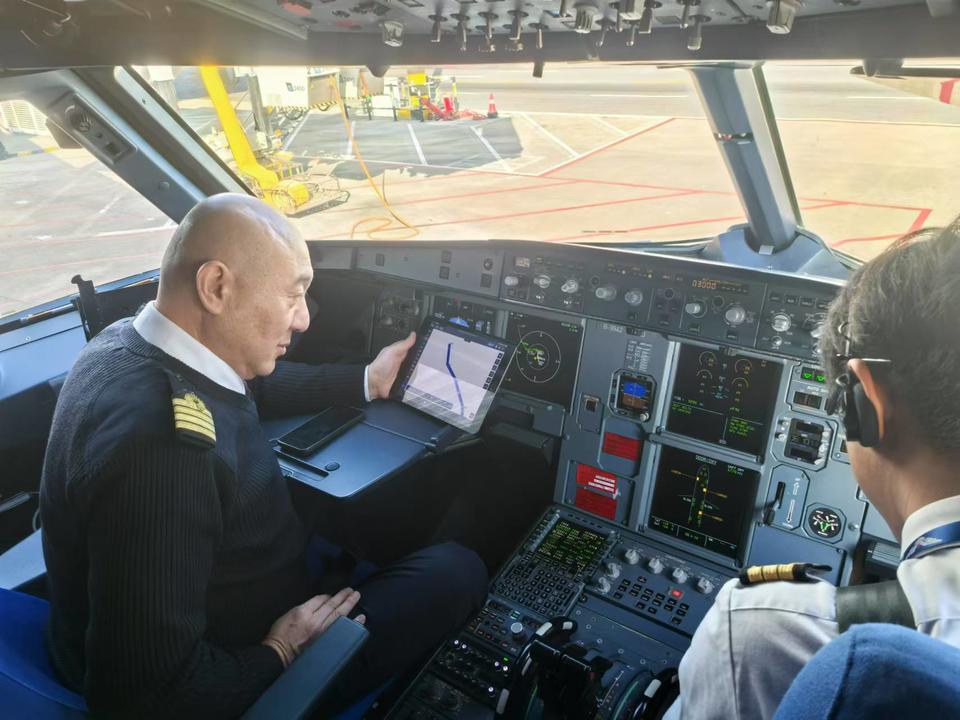在王伟35年的飞行生涯中,几乎很少遇到突发情况,但这并不是因为幸运,而是源于他每次飞行前充分的准备和熟练的处置。每次飞行前,他都会认真分析航线、机场、航路等方面情况,把飞行过程在脑海中过一遍,梳理出可能出现的各种风险。他常说“你尊重飞机,飞机才会尊重你”,因此无论是日常航班还是特殊任务,他都一丝不苟认真对待——从航前准备到机上操纵,再到讲评复盘,他将“严谨”二字贯穿始终,将遵章守纪刻入骨髓,抓实每一个细节,确保航班运行安全。