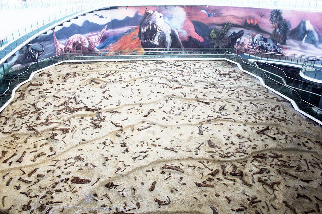 建筑外形为恐龙蛋壳造型,内设化石原址展示区、恐龙骨架展示区、动感影视观赏区、时空隧道展示区四大功能区。