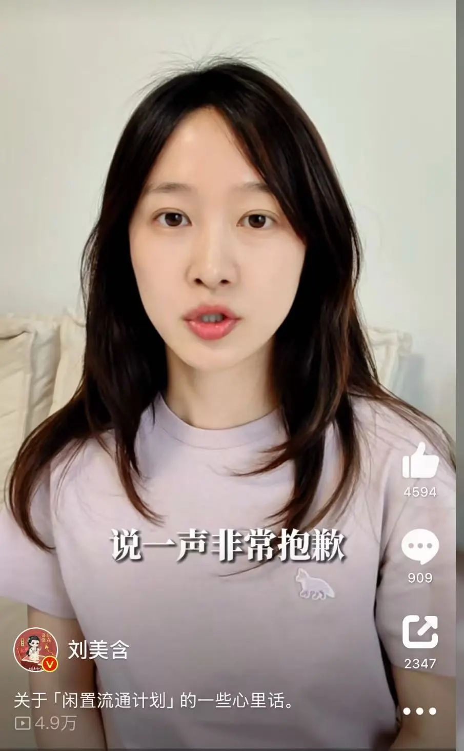 刚刚,刘美含录视频道歉,称因前期工作疏漏,市集上出现了几个有纰漏的产品,目前已经跟购买者逐个积极解决。她解释了做闲置流通计划的原因,是希望爱意和美好能够流通下去,这是她的初衷,也是会做下去的事。