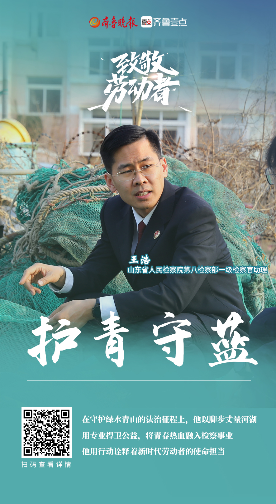 在维护生态环境与公共利益的战场上,总有一群人默默坚守、无私奉献。山东省人民检察院第八检察部检察官助理王浩,就是其中的杰出代表。他以法律为剑,斩断污染与侵害;以信念为盾,守护山河与家园,用实干与担当诠释着新时代检察人的责任与使命,在公益诉讼的道路上书写着不平凡的奋斗篇章。