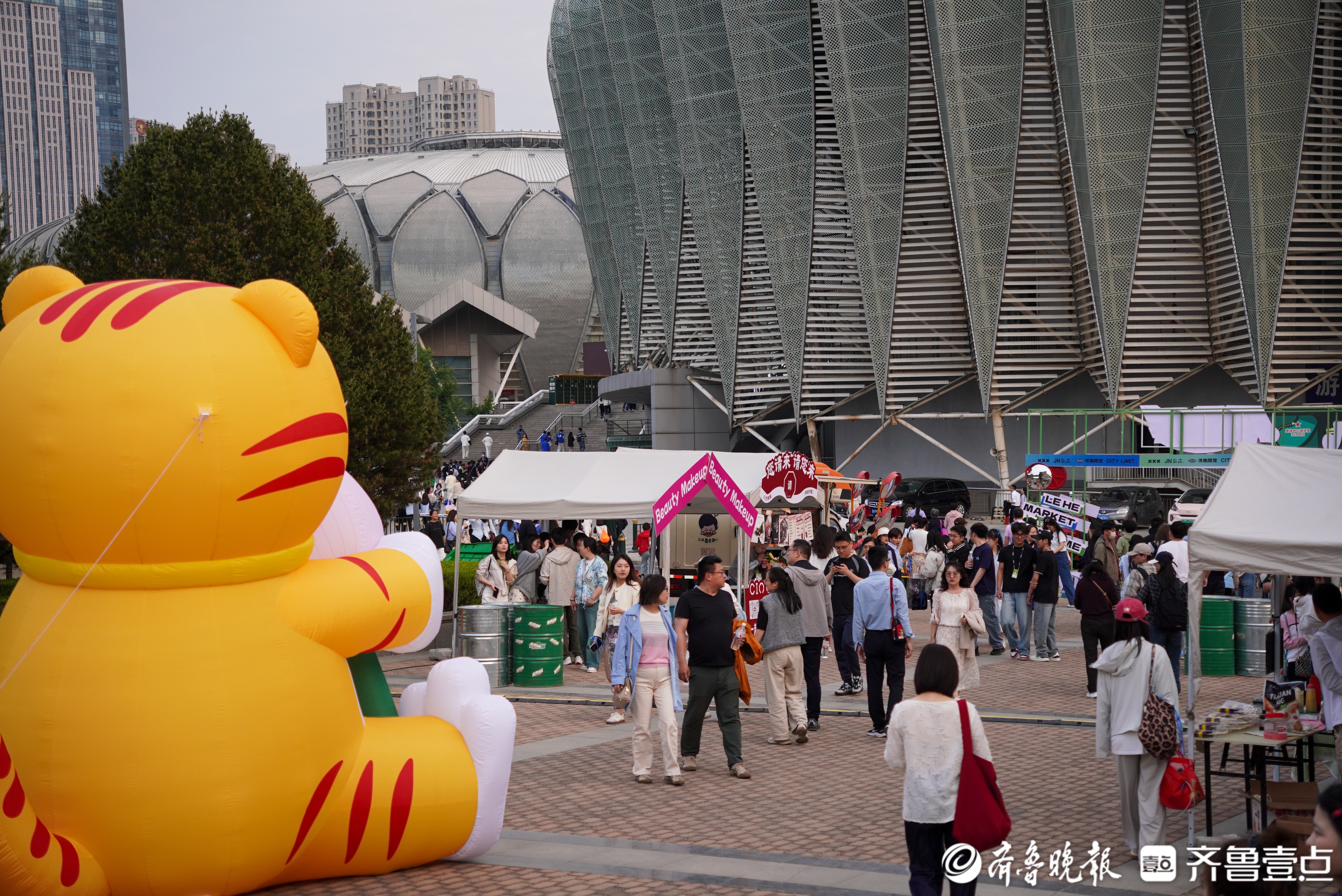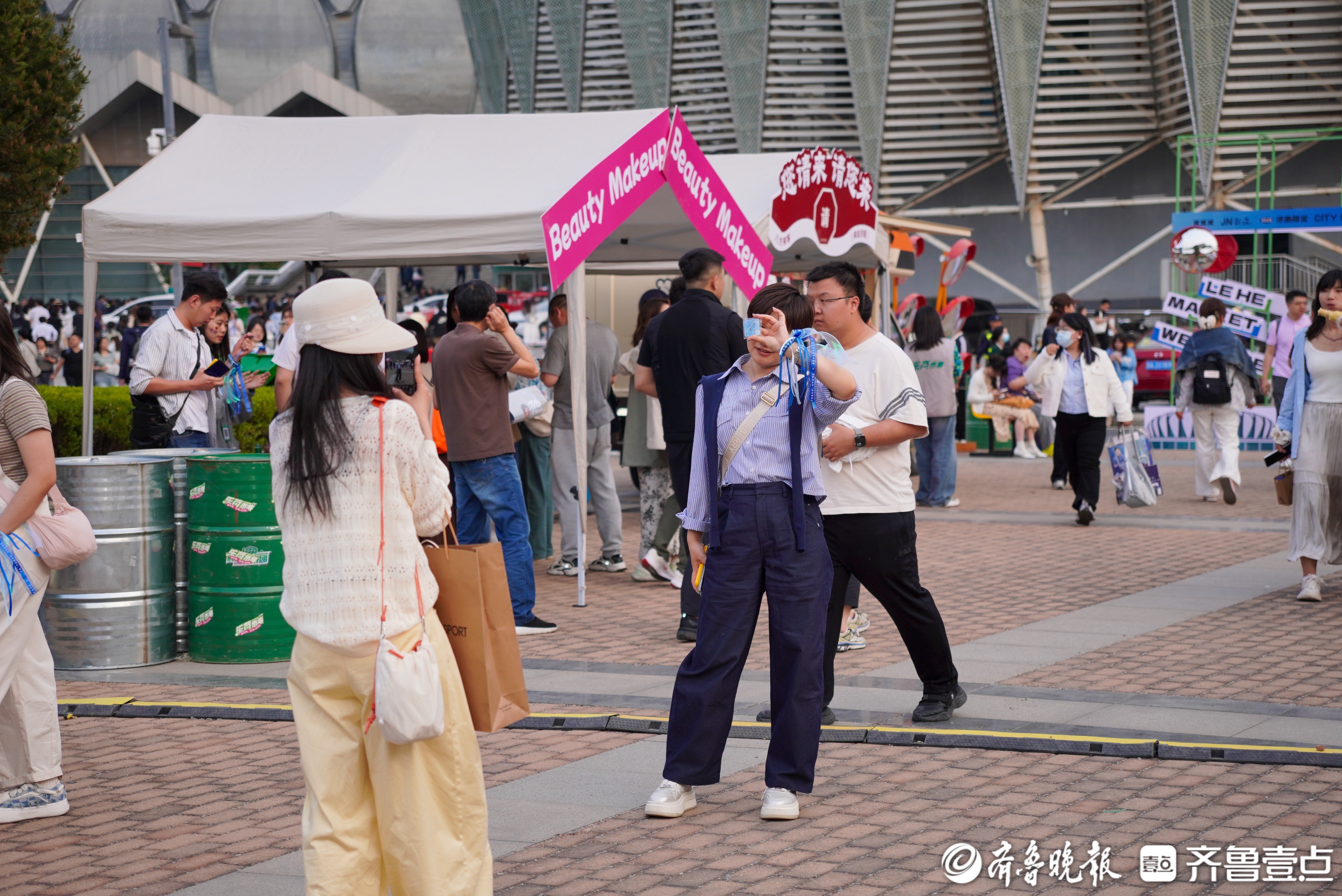 5月4日晚,“万物安生时”李健巡回演唱会济南站在济南奥体中心体育馆开唱。演唱会开始前,济南奥体中心7号门内的 “乐荷市集” 热闹非凡,这里涵盖餐饮、编发妆造等多种消费业态。