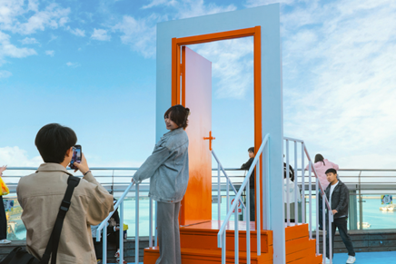 蓝天、大海、朝阳、晚霞,是烟台大悦城观海平台在“五一”假期焕新升级后的关键词。独特的天海蓝色,以及橙色搭配十分吸睛,观海平台成为很多游客、顾客必逛的地标打卡点。