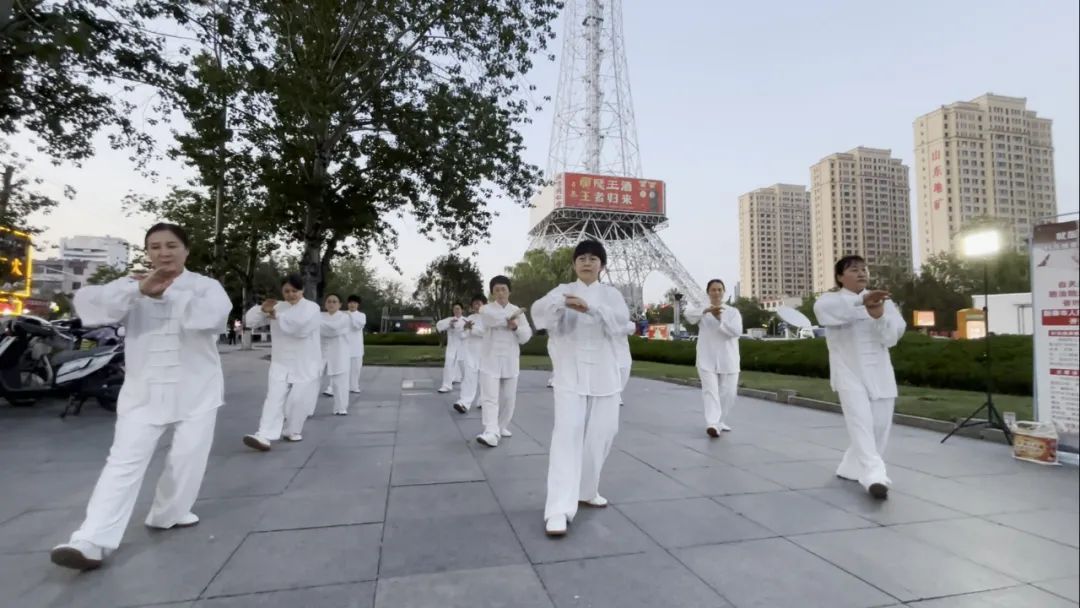 现场演示指导市民习练八段锦养生操等。