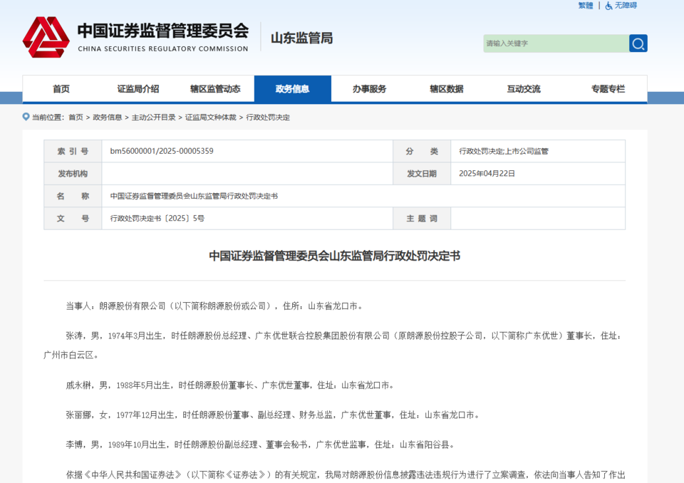 朗源股份财务造假遭重罚 时任高管被市场禁入