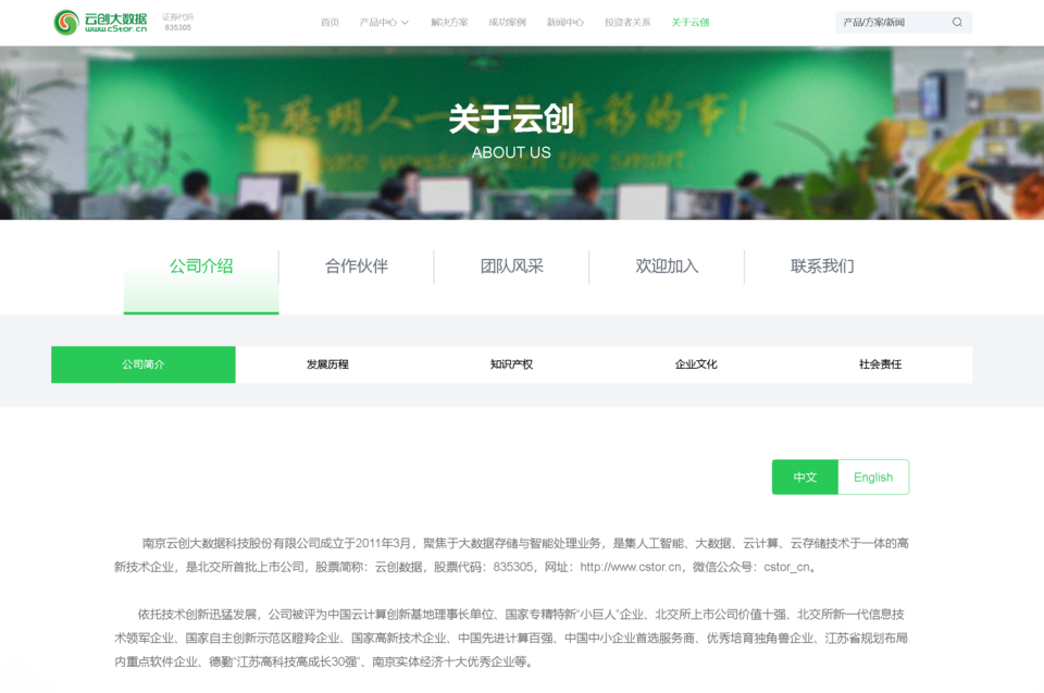 公司官网显示,南京云创大数据科技股份有限公司成立于2011年3月,聚焦于大数据存储与智能处理业务,是集人工智能、大数据、云计算、云存储技术于一体的高新技术企业,是北交所首批上市公司。公司曾被评为中国云计算创新基地理事长单位、国家专精特新“小巨人”企业、北交所上市公司价值十强、北交所新一代信息技术领军企业、国家自主创新示范区瞪羚企业、国家高新技术企业、中国先进计算百强、中国中小企业首选服务商、优秀培育独角兽企业、江苏省规划布局内重点软件企业、德勤“江苏高科技高成长30强”、南京实体经济十大优秀企业等。