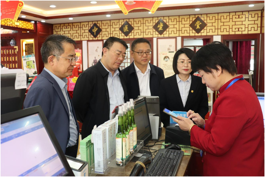 8日上午,孟冬一行来到位于青岛北路的燕喜堂医药连锁425店,实地考察定点零售药店门诊统筹业务开展情况。工作人员现场演示了购药报销业务流程,孟冬认真听取情况介绍,深入了解群众购药结算过程中的体验。此外,调研组实地了解药店参加“集采药品进基层”活动情况,认真查看询问药品配备、销售等情况,了解药店经营管理过程中存在的问题和困难。工作人员还现场演示威海医保小程序“便民找药”模块,通过线上“药比三家”,在同等条件下精准选择最优药品,方便群众就近购药。
