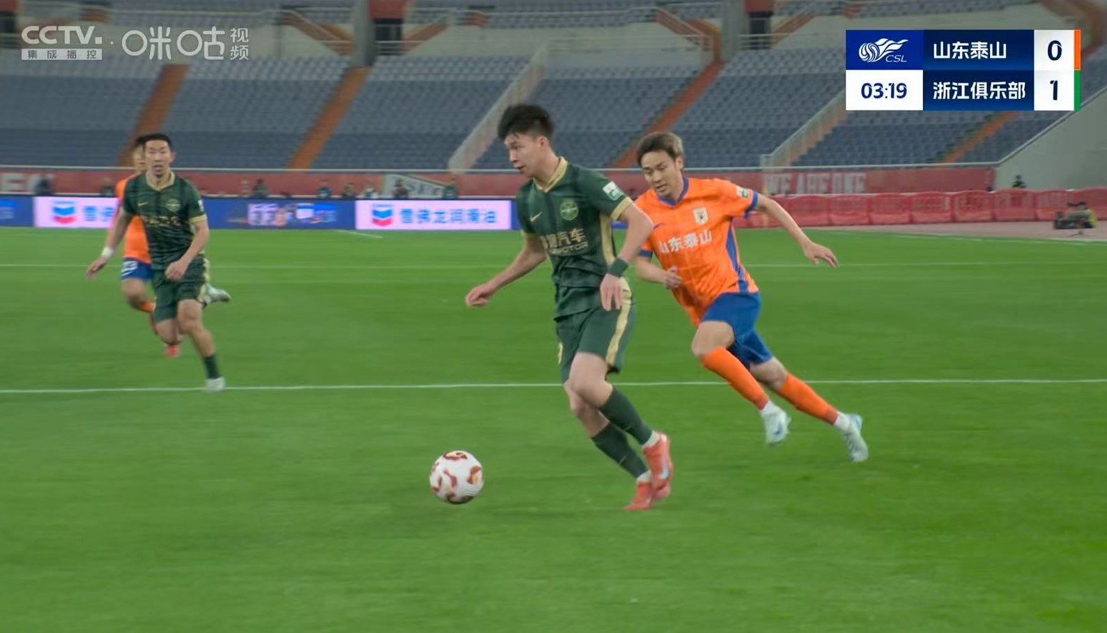 半场战报|开场两分钟失球,泰山暂以1:1战平浙江队
