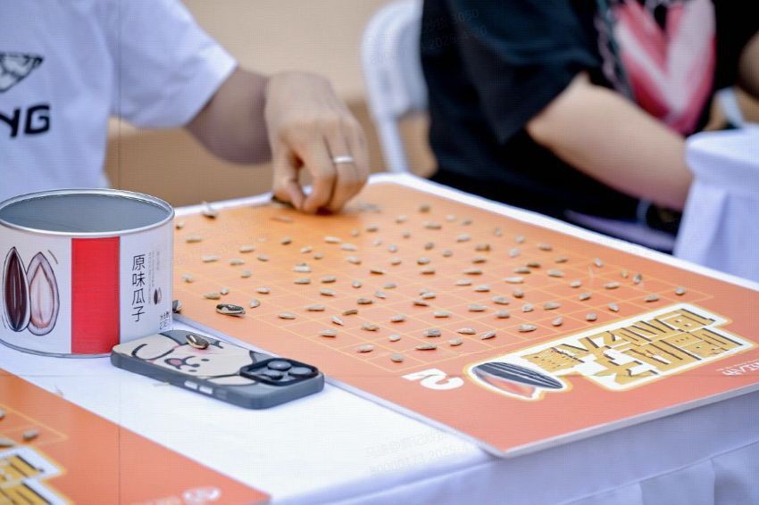 “嗑瓜子但不吃”趣味活动要求参赛者以5-10人为一组,在限定时间内快速嗑开瓜子,并将完整的瓜子仁巧妙摆放在特制“格子纸”上。参与者需兼顾手速与策略,通过选择瓜子仁的摆放位置争夺格子占用数优势,最终以填满格子或占据格子最多者胜出。活动不仅考验手速与耐心,更需灵活运用空间布局思维,参与者需要多方协调,仔细布局,拿下胜利!