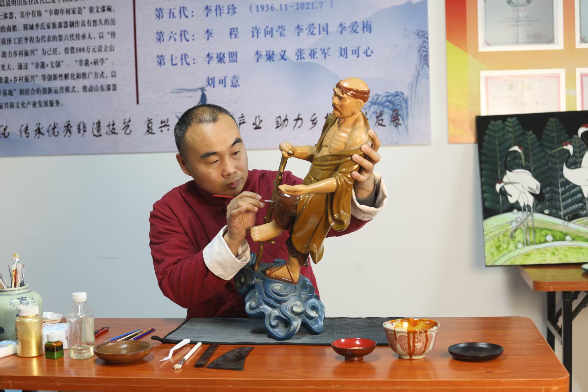 李程是山东梦艺达文化艺术有限公司漆器制作工,与“会咬人”的大漆相守二十余年,李程经历了无数次因过敏导致的全身肿痒,也在一次次与大漆的磨合中,逐渐打磨出非遗传承创新发展的新路径。