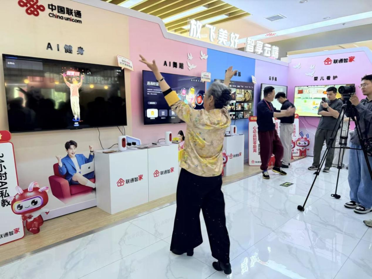 “你好通通,请打开通通舞蹈!”在山东联通八一旗舰营业厅体验区,一位体验者王女士对着通通说完后,大屏电视瞬间切换至AI舞蹈界面,通过摄像头的视觉感知、端侧算力以及骨骼识别算法,屏幕上的彩色圆圈实时引导记者舞动起来。除了跟随舞蹈节奏,智家通通还支持实时评分、动作纠偏和排行榜等功能,兼具专业性与趣味性。“就像有一位专业舞蹈教练在指导,太有趣了!”王女士体验后连连赞叹道。