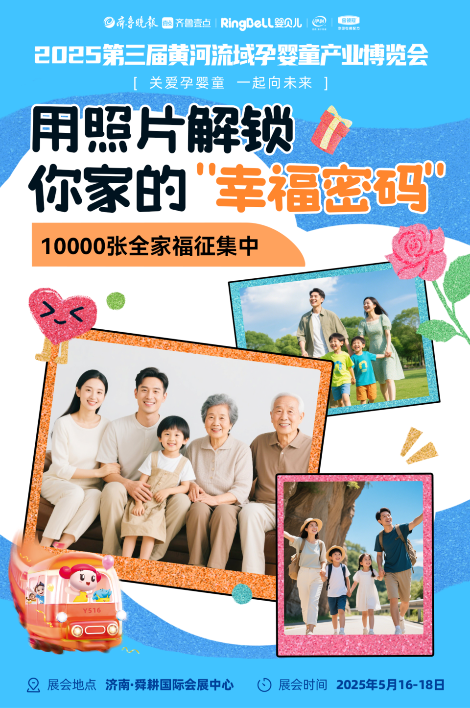 2025年5月16日-18日,第三届黄河流域孕婴童产业博览会在万众期待下在济南舜耕国际会展中心盛大举办。200多家母婴头部品牌齐聚,为赴展家庭带来超值优惠和超多“羊毛”福利。同时,由组委会精心筹备的“万张全家福”征集活动成果也在展会大屏上展出,吸引无数参展家庭驻足凝视,感受家庭的力量与温暖。