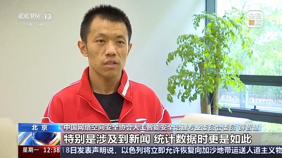 中国网络空间安全协会人工智能安全治理专业委员会委员 薛智慧:当使用AI软件生成的内容时,可以从三个方面进行重点关注,通过多个信息来源,对内容进行确认,特别是涉及新闻,统计数据时更是如此;如果生成了具有敏感和偏见性的内容,需要提高警惕,避免被误导;AI软件只是一个辅助工具,不要过度依赖和相信这些软件生成的内容。