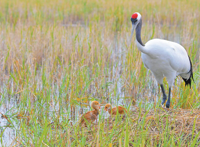 黑龙江扎龙国家级自然保护区是我国最大的丹顶鹤人工繁育种群再野化基地。近日,保护区内人工散养丹顶鹤迎来繁育季。 |