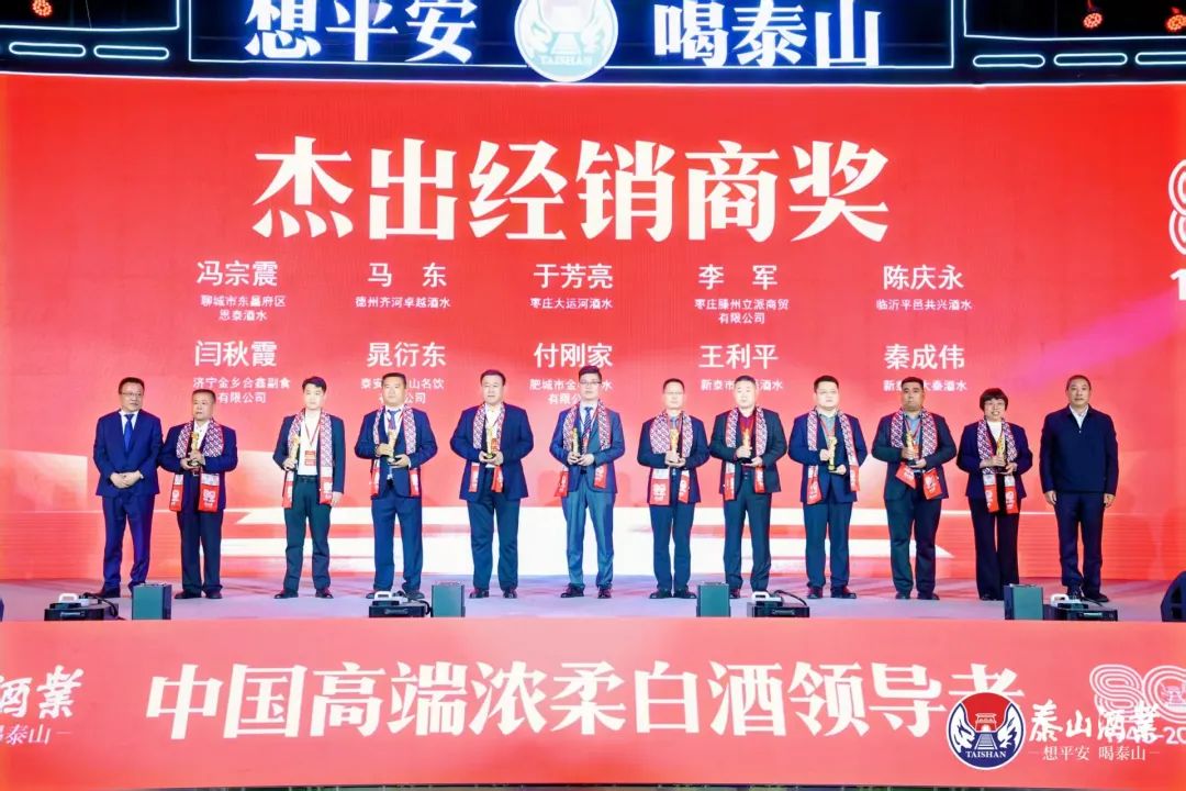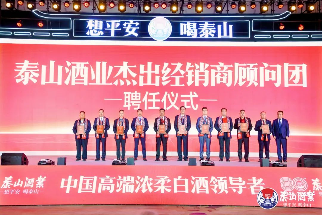 此外,泰山酒业十分重视渠道商价值,不仅现场颁发品牌80年杰出经销商大奖,还聘任山东鲁糖经贸有限公司徐天忠、苏州泰山经贸发展有限公司傅行宏、枣庄大运河酒水于芳亮等10大杰出经销商,组成营销顾问团,以共赢营销文化,夯实厂商共同体建设。