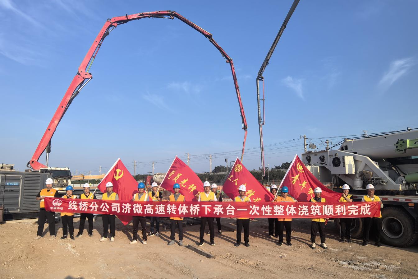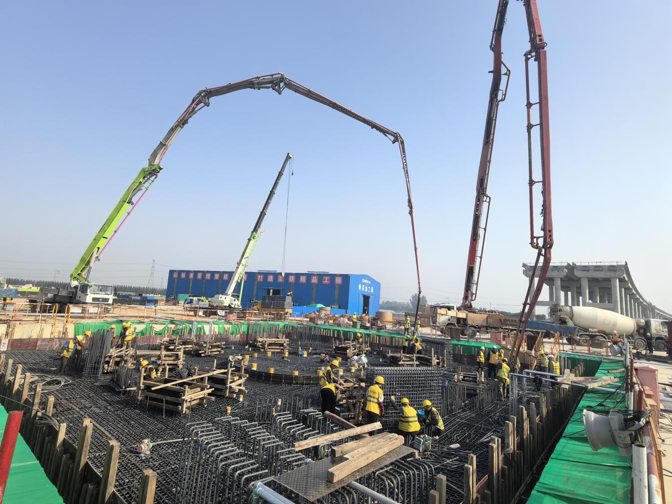 济微高速跨瓦日铁路立交桥工程项目主墩承台浇筑完成