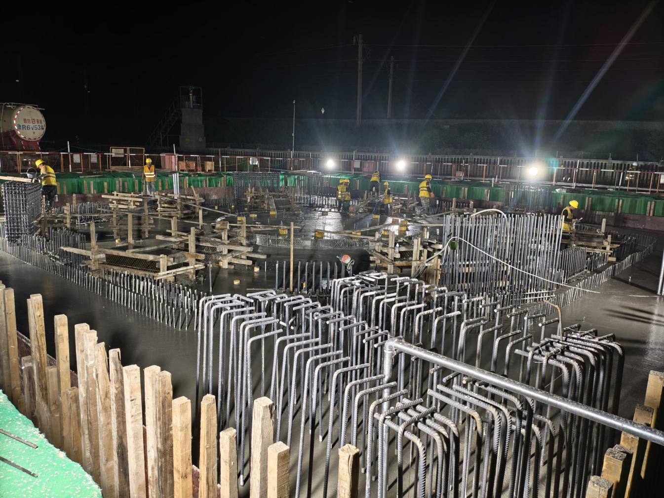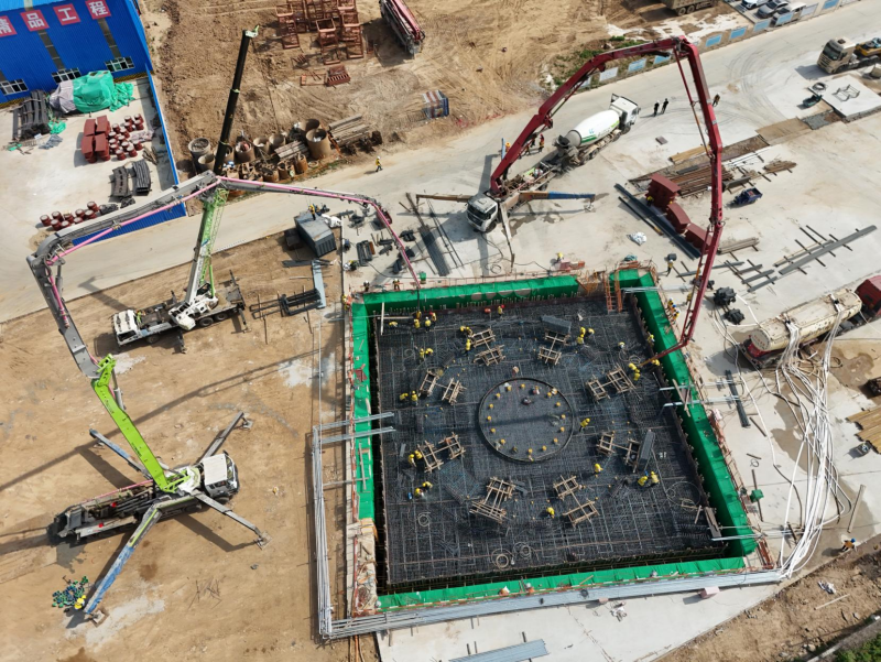 在混凝土浇筑环节,面临单次3620立方米的浇筑体量,施工方部署两台混凝土泵车实施不间断作业,历时41小时完成浇筑。此次施工存在浇筑体量大、持续时间长、温控要求严苛等难点,尤其需严格控制混凝土水化热。施工过程中,从原材料筛选、配合比调配,到浇筑全程温度监测与养护,均执行标准化流程,确保混凝土施工质量达标。