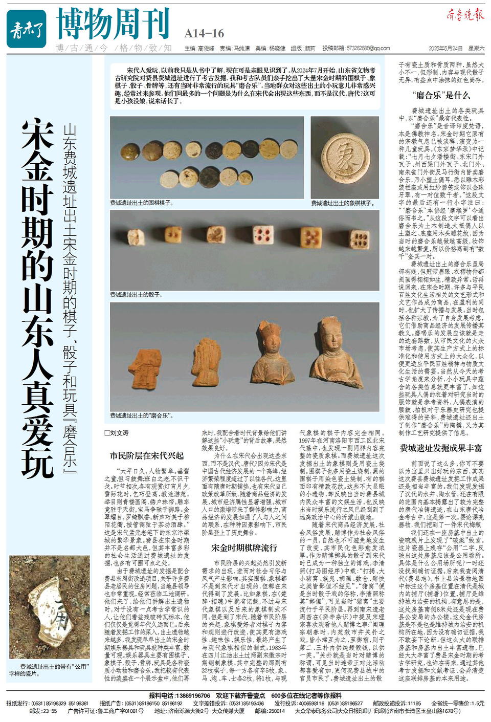宋代人爱玩,以前我只是从书中了解,现在可是亲眼见识到了。从2024年7月开始,山东省文物考古研究院对费县费城遗址进行了考古发掘,我和考古队员们亲手挖出了大量宋金时期的围棋子、象棋子、骰子、骨牌等,还有当时非常流行的玩具“磨合乐”。当地群众对这些出土的小玩意儿非常感兴趣,经常过来参观。他们问最多的一个问题是为什么在宋代会出现这些东西,而不是汉代、唐代?这可是小孩没娘,说来话长了。