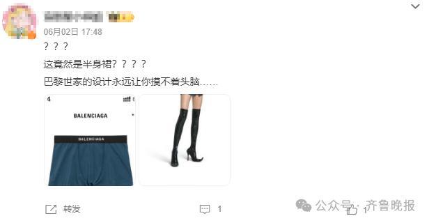 近日,巴黎世家推出一款女款半身裙引发热议,不少网友吐槽该裙子造型与平角短裤相似,直呼“看不懂时尚”。