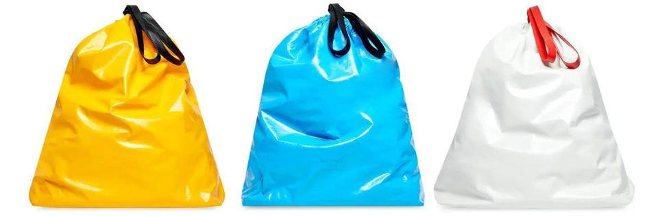 早在2022年8月巴黎时装周上,巴黎世家就推出过一款“垃圾袋包”,类似黑色塑料袋,用小牛皮做成,标价1790美元,约合人民币1.2万。