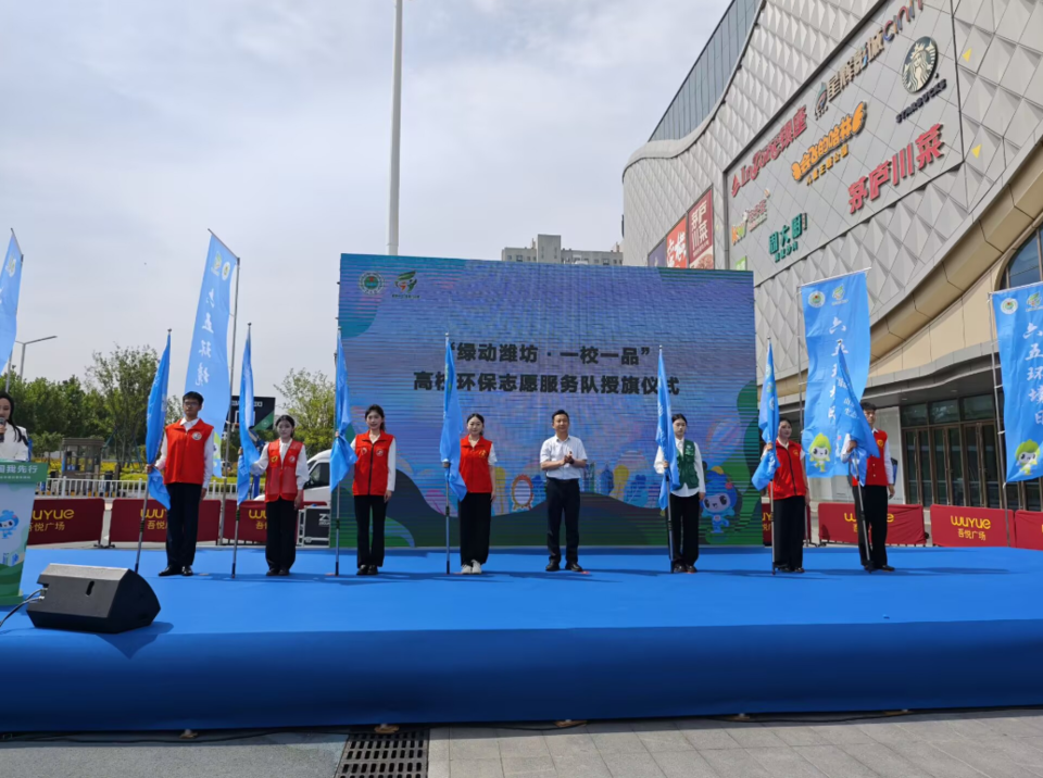 “绿动潍坊”是潍坊市生态环境局打造的生态环保志愿服务品牌,通过与社会组织、驻潍高校合作,以“志愿红”守护“生态绿”,助力经济社会绿色低碳发展,为美丽潍坊建设贡献志愿服务力量。在活动现场,市生态环境局党组书记、局长、一级调研员邹晓东为志愿服务队代表授旗,来自潍坊学院、山东畜牧兽医职业学院、山东信息职业技术学院、山东工业技师学院、山东交通职业学院、潍坊理工学院等14所高校的志愿服务队领队接过“‘绿动潍坊’生态文明高校行动联盟”旗帜,宣布“绿动潍坊·一校一品”高校环保志愿服务活动正式启动。