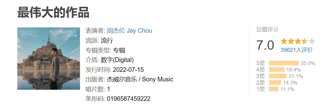 然而,该专辑却引发了一些争议,评价毁誉参半,不少网友质疑其“太贵”“难听”“江郎才尽”。专辑豆瓣评分仅7.0分,远低于周杰伦此前发行的专辑。