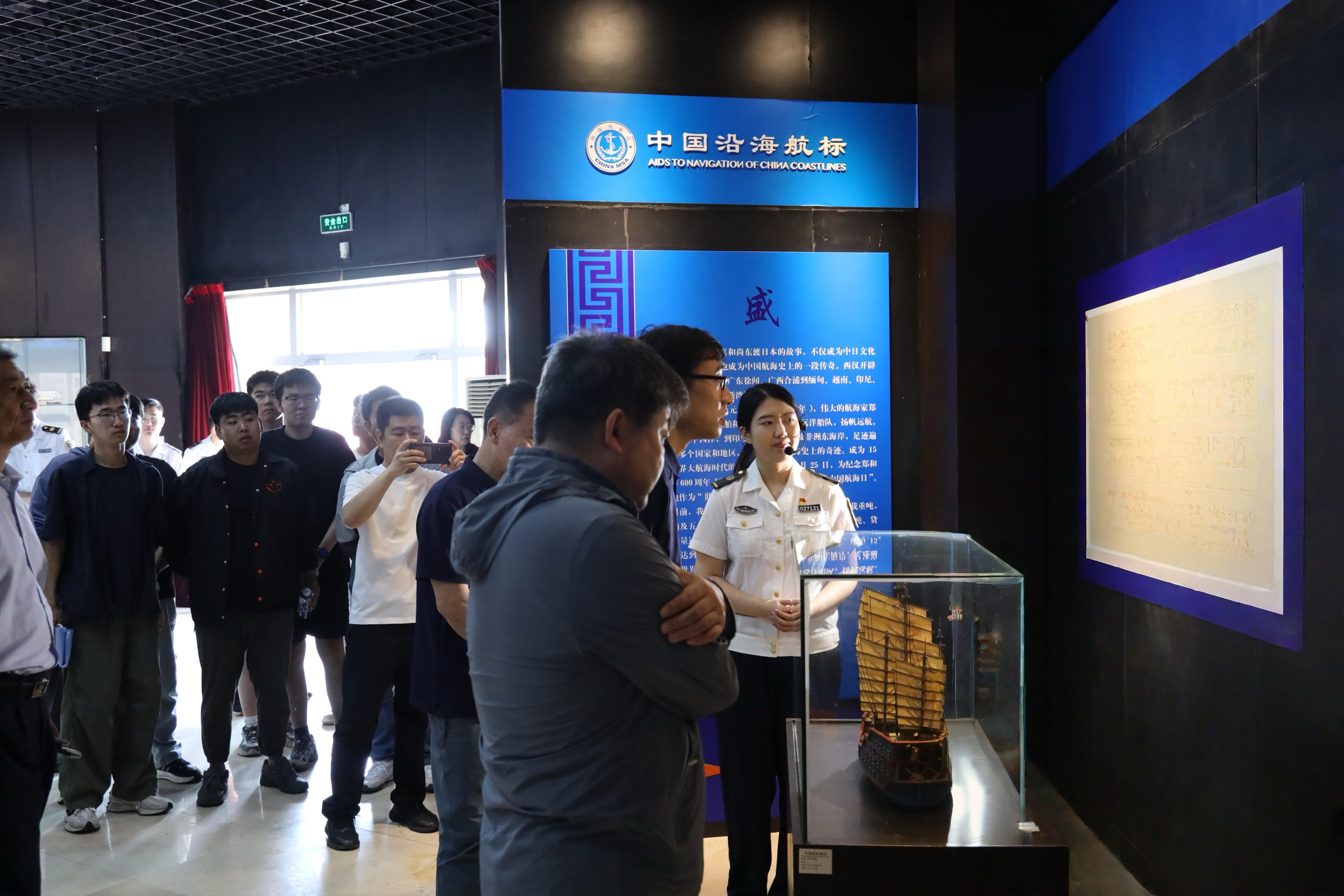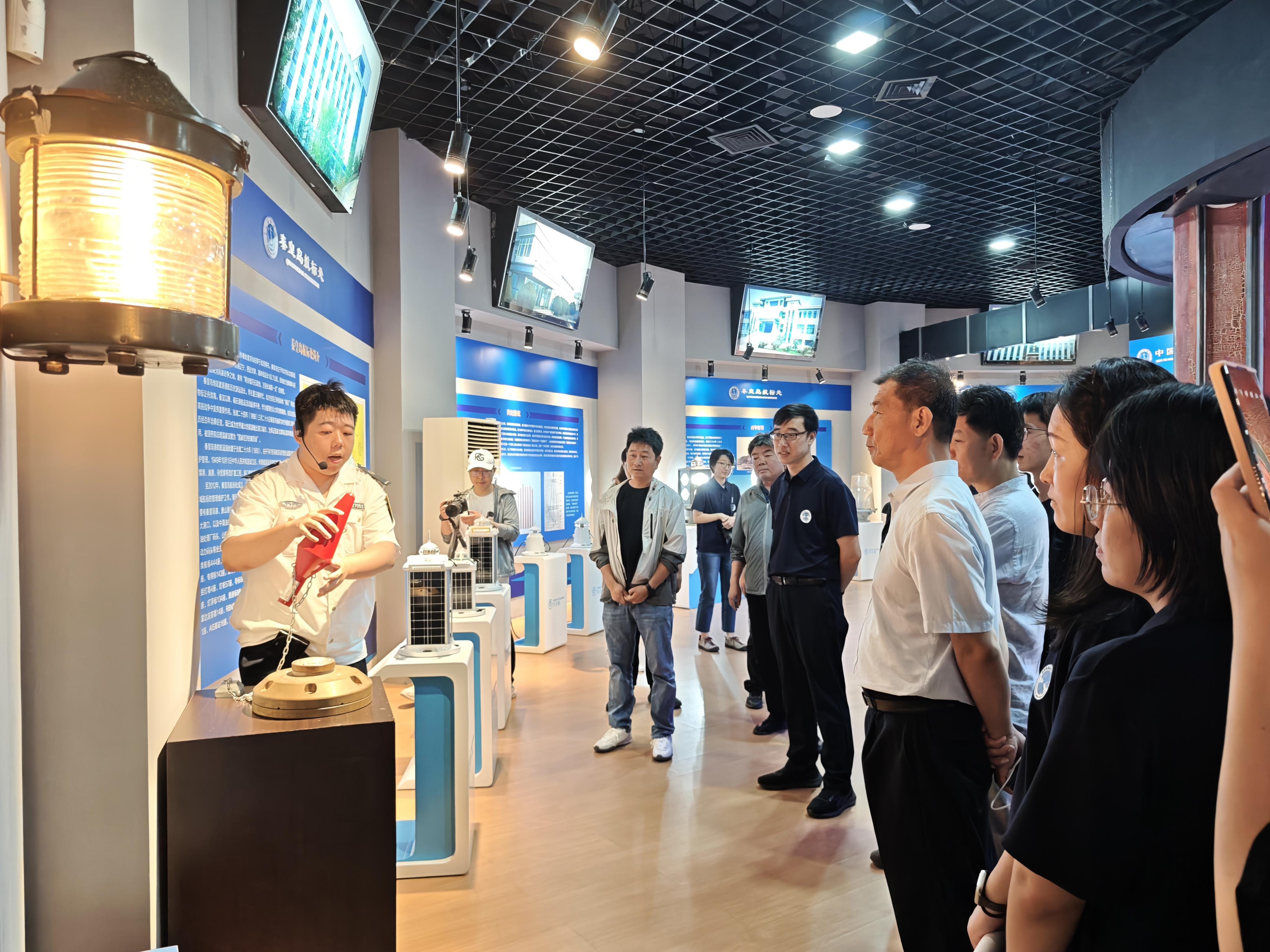 活动首站来到中国航标展馆,在秦皇岛航标处的青年代表引导下,参与者参观了解了航标历史发展演变以及秦皇岛辖区导助航设施配布情况。馆内丰富的历史资料、珍贵的实物展品与现代化的展示技术相结合,生动地向大家展现了中国航标事业从古至今的发展历程。展馆走廊悬挂的50余幅国内外灯塔摄影作品,更让参观者在艺术氛围中体会航标作为海上守护者的历史使命。