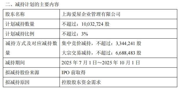 6月10日,来伊份(603777.SH)发布公告称,公司控股股东爱屋企管拟通过包括但不限于集中竞价交易、大宗交易等方式,减持公司股份合计不超过1003.27万股,即不超过公司总股本的3%。
