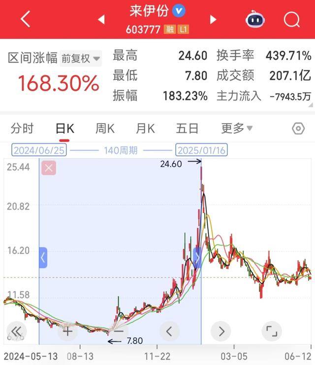 在回购和注销股份的合力助推下,来伊份股价于2025年1月16日上涨至24.6元/股的高点,自回购方案实施之日起至此,公司股价累计上涨约168%。虽然后来股价有所回调,但至减持公告日(2025年6月10日)区间涨幅仍有48%。
