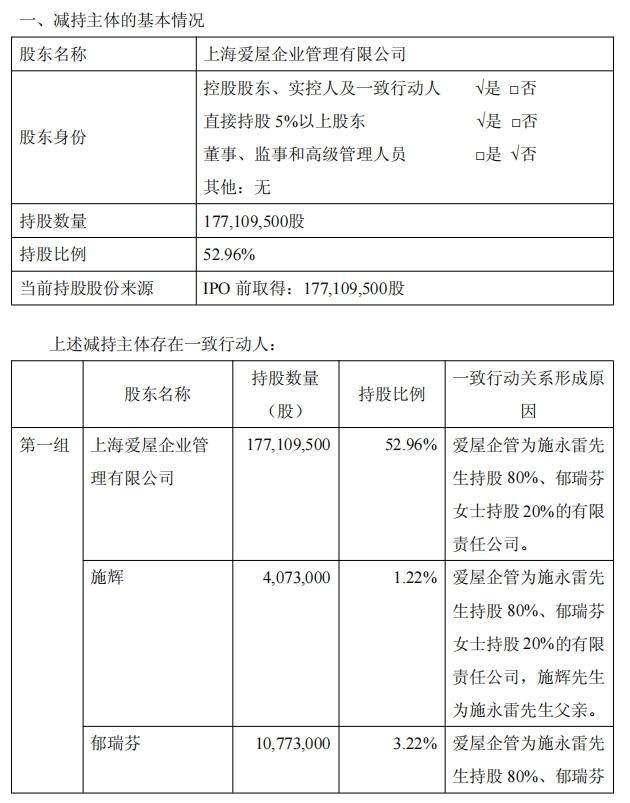 公开资料显示,控股股东爱屋企管由施永雷(持股80%)和郁瑞芬(持股20%)共同出资设立。施永雷与郁瑞芬为夫妻关系,施永雷与施辉为父子关系,三人共同构成来伊份的实际控制人。