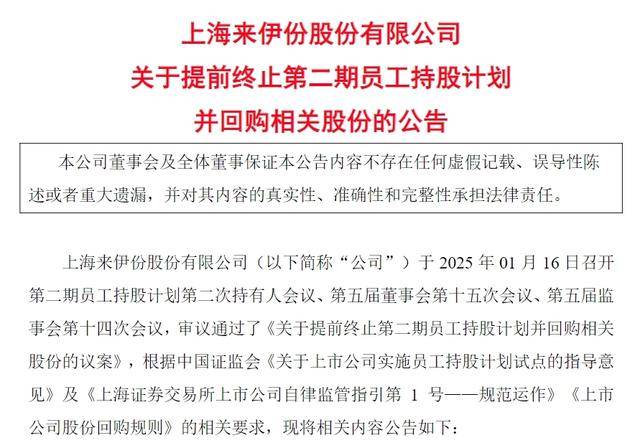 除了回购,2025年1月16日晚间,来伊份审议还通过《关于提前终止第二期员工持股计划并回购相关股份的议案》,后来,又审议通过《关于变更部分回购股份用途并注销的议案》。