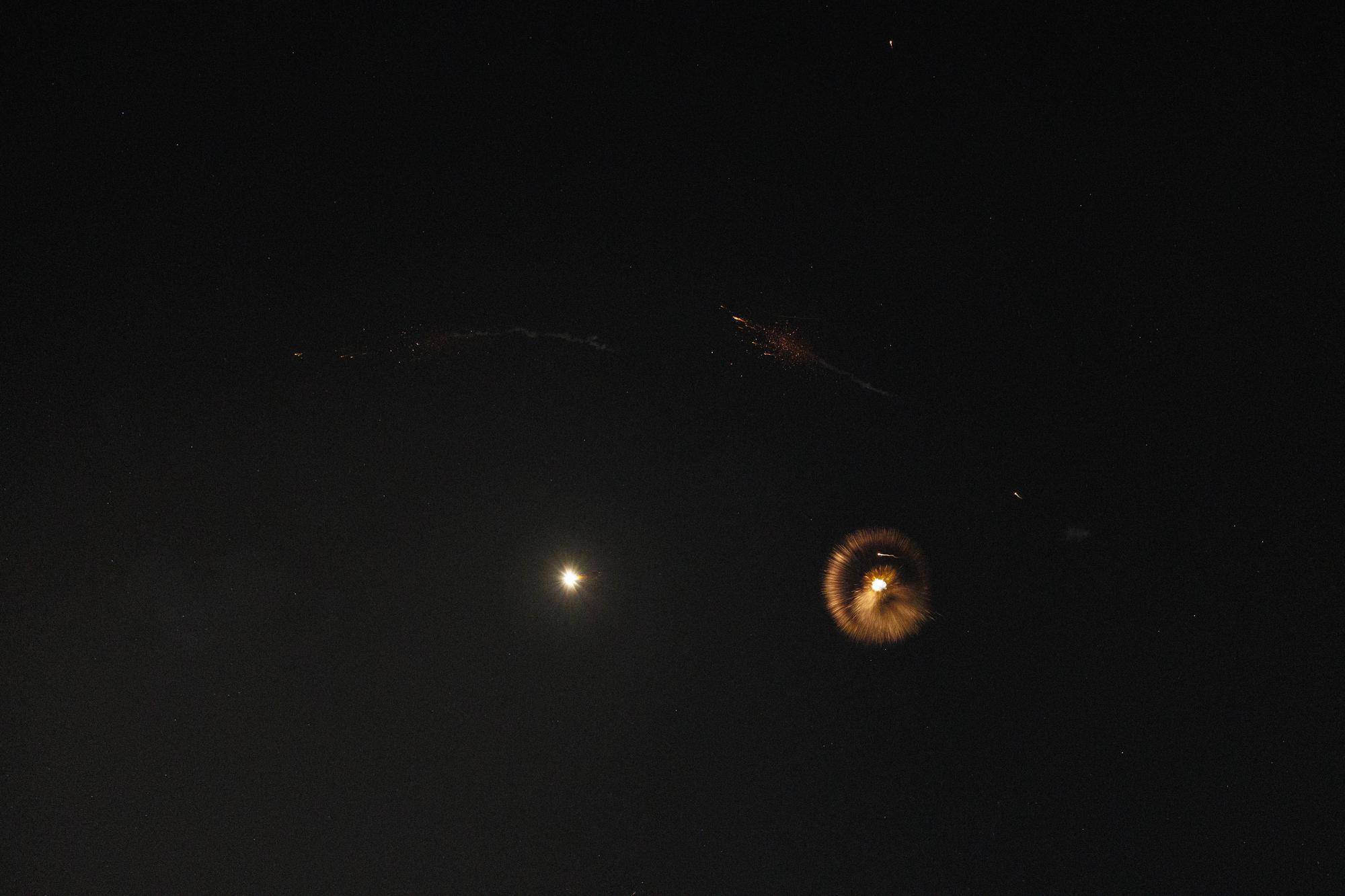 6月14日,在以色列海法上空,来袭导弹遭拦截发生爆炸。新华社/基尼图片社
