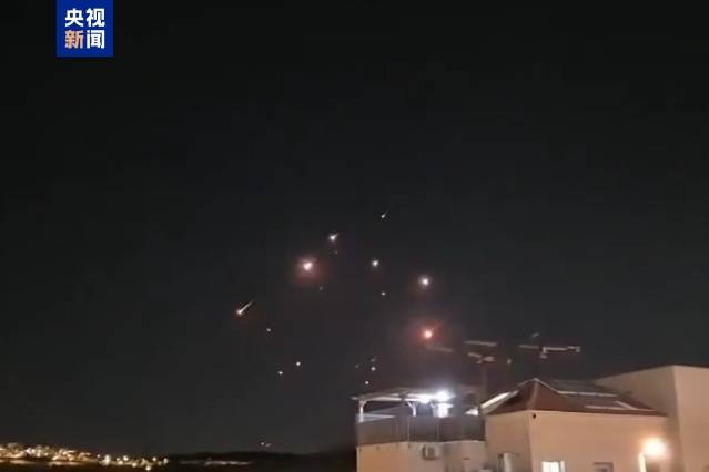 以色列北部空域当地时间14日晚遭伊朗导弹袭击画面