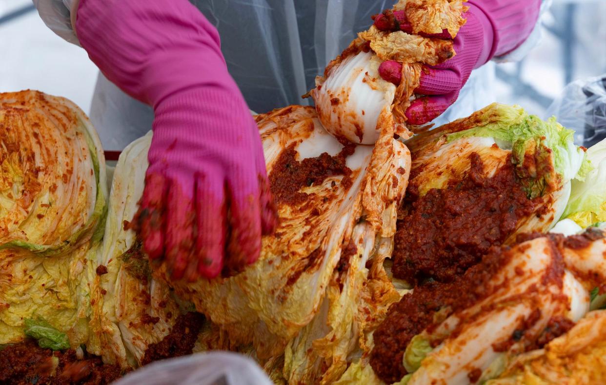 2024年11月27日,人们在韩国首尔的曹溪寺集体制作泡菜。新华社发(全休相摄)2024年11月27日,人们在韩国首尔的曹溪寺集体制作泡菜。新华社发(全休相摄)