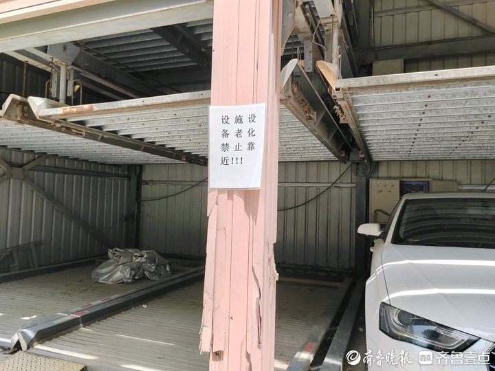 无独有偶,在济南鲁能康桥小区1号楼旁,地上机械式立体停车库情况类似。记者来到该小区发现,该停车库为六排四层,目前仅第一层停放着车辆,车位也出现明显的锈蚀现象。该车库还张贴着警告:设施设备老化禁止靠近。