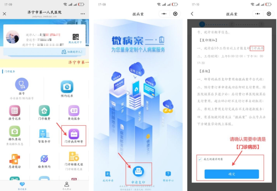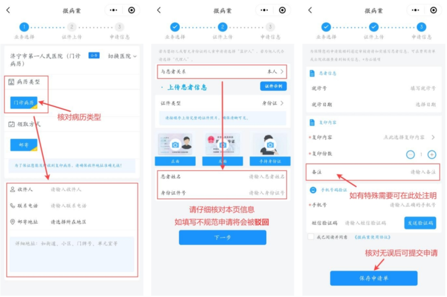 您只需动动手指,按照提示进行操作,门诊历史病历轻松邮寄到您家。
